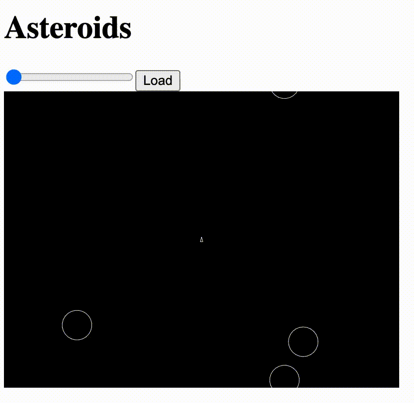 So the game is a simple asteroids game. You control a ship which can rotate and thrust forward. You can shoot bullets to destroy asteroids. The asteroids break into smaller asteroids when shot. The game is over when you collide with an asteroid.